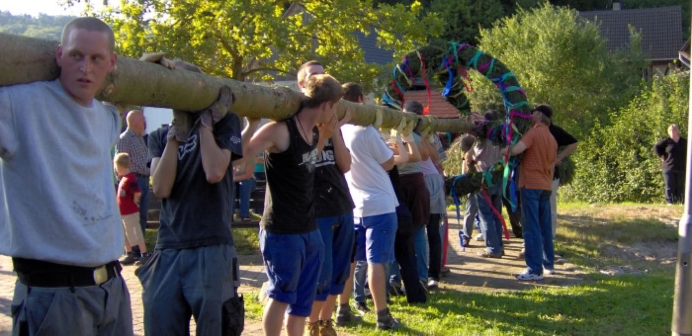 Kerb: Stellen des Kerwebaums am Freitag Nachmittag.