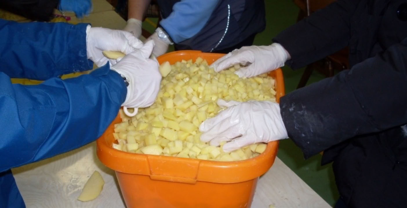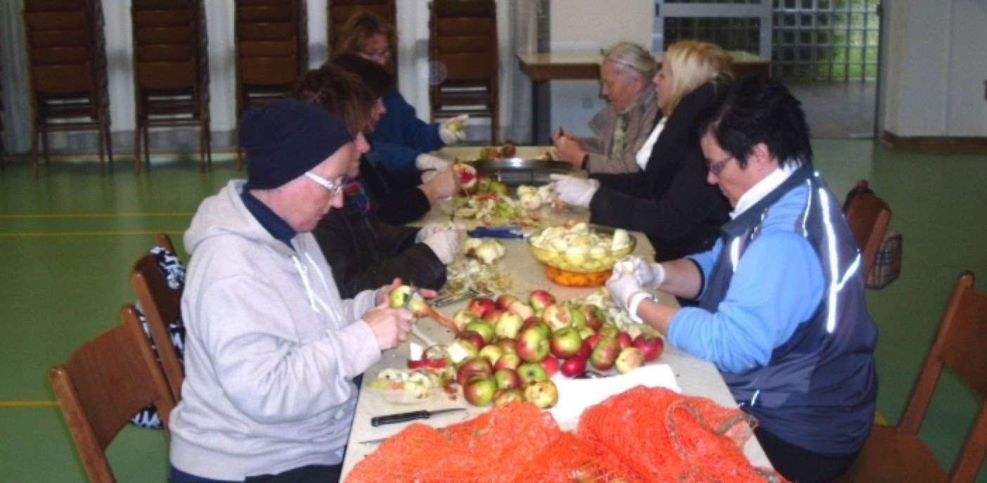 Es müssen 2 Zentner Äpfel und ein Zentner Kartoffeln geschält werden.