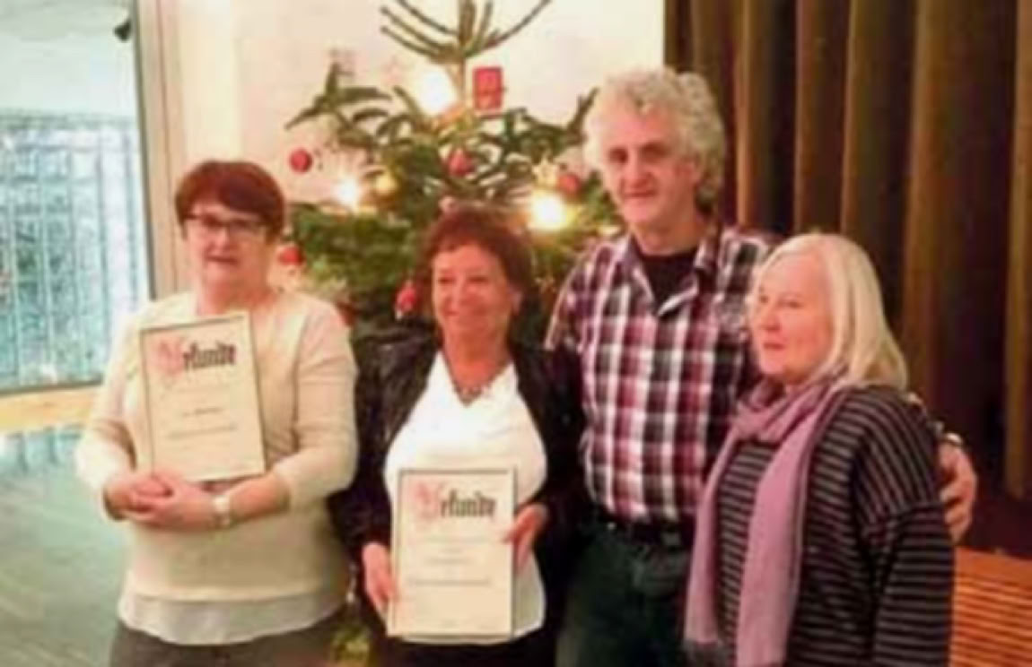 Der SCB hat im Rahmen seiner Weihnachtsfeier am 09.12. die im Frühjahr ausgeschieden Vorstandsmitglieder geehrt (von links): Ilse Bombala, Petra Walter, Ulrich Pra, Ute Rothstein. Sie haben mehr als zwei Jahrzehnte den Verein geleitet und entscheidend mitgeprägt. Die Geehrten versicherten, den Verein auch weiter aktiv zu unterstützen.