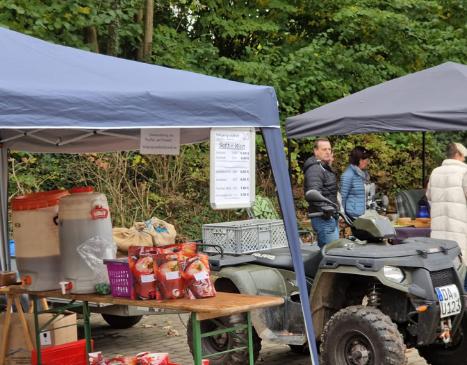 Zur Eröffnung begleitete Balkhäuser Bläserchor den Erntedank-Gottesdienst. Danach konnten die Gäste neben frischgepressten Süßmost, Kartoffelpuffer mit Apfelmus, Kartoffel- und Maronensuppe genießen. Auch für Kaffee und selbstgebackene Kuchen war gesorgt. An den Ständen konnten lokale Produkte und Handarbeiten gekauft werden.